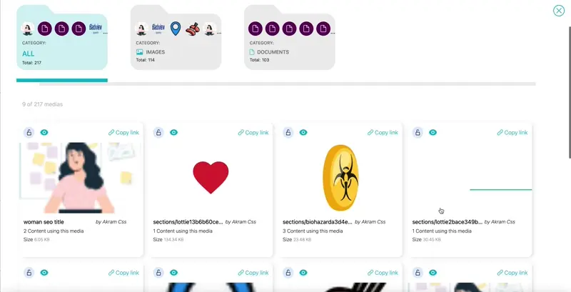 - You can use them in any section that includes a media element, and also insert them through the WYSIWYG editor of a section.